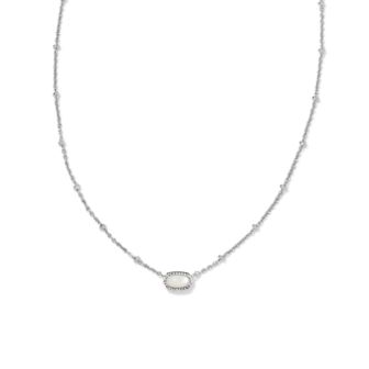 Our bestselling icon goes daintier (and cuter!) than ever in the Mini Elisa Silver Satellite Short Pendant Necklace in Ivory Mother of Pearl. Set on a textured satellite chain, this take on our signature shape is perfect for those with a more minimal aesthetic or anyone wanting to add some color to their layers. 15' CHAIN WITH 4' EXTENDER, 0.39'L X 0.21'W PENDANT
