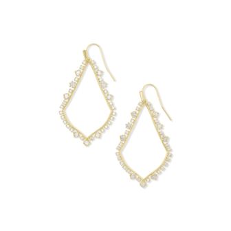 These loopy open drop earrings are framed in radiating crystals that provide twinkling filigree for the evening-ready style. 2 1/8" drop; 1 1/8" width French wire 14K gold plated over brass.