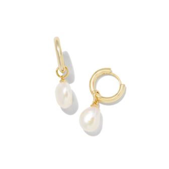 Classy and chic, we're obsessed with the Willa Gold Pearl Huggie Earrings in White Pearl-and you will be, too! A dainty cultured freshwater pearl dangles from a petite huggie for a lightweight style you'll pair back with any stack. 1.8" outside diameter, 0.4" L X 0.3" Charm