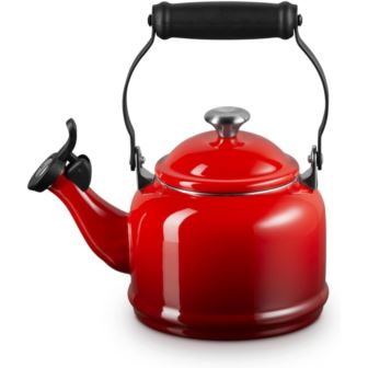 The Le Creuset enamel on steel Demi Kettle is crafted from fast-heating premium carbon steel glazed in our stylish palette of colors and unique designs to complement any kitchen. Useful for preparing French press coffee, oatmeal and much more in addition to tea, durable carbon steel heats water rapidly, and a fixed single-tone whistle alerts when the water has reached a rolling boil. Chip-resistant, non-reactive, resistant to stains, and easy to clean, Le Creuset kettles make excellent gifts and are a beautiful way to add a touch of color to the kitchen.