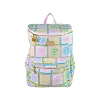 When the weather's too good to pass up a picnic, toss your snacks and drinks in this backpack cooler and kick back in the great outdoors.. Pattern Printed Cotton Canvas. Thermal Insulated Interior. Adjustable Strap. Front Zip Pocket. Side Pockets With Elastic. Lilly Gold Logo Plaque. Gold Logo Charm Zipper Pull. Care: Spot Clean. Dimensions: 17 x 11.5 x 8