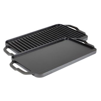 Introducing the Chef Collection™. This chef-inspired, premium line of cast iron cookware is designed to last a lifetime. From kitchen to table, this collection combines our 120+ year heritage with a modern design to elevate your cooking experience. This Reversible Grill/Griddle provides excellent heat retention & distribution, and fits over two stovetop burners. The lifted handles provide an ergonomic grip for better control, no matter which side of the piece you're using. Large cooking surface is great for pancakes and eggs, or grilled chicken or steak.
