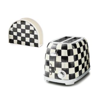 Let's have a toast to appliances that are anything but ordinary with this Courtly Check 2-Slice Toaster! Designed to bring color, pattern, and fun to your kitchen, this stainless-steel toaster features our most iconic check pattern, making it the perfect addition to your MacKenzie-Childs collection. When it comes to staying tidy, our Courtly Check Enamel Napkin Holder makes table manners and table style a snap. Our most popular pattern is casual and cozy, with a subtle jewel-tone palette woven through the glossy, hand-painted, high-contrast checks. Toaster Dimensions: 6.5" wide, 7.5" tall, 10.5" deep, 1.25" slot width. Napkin Holder Dimensions: 2" wide, 6" long, 4.5" tall.