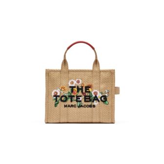 Embracing springtime charm, this texturally woven iteration of our signature Medium Tote silhouette celebrates our seasonal motif with embroidered bushels of daisies. Featuring dimensionally embroidered namesake branding and a refined top-zip closure, this everyday essential can be carried by woven top handle or attached with the adjustable webbing strap for effortlessly chic crossbody styling. Crafted from durable woven fabric, it offers both style and function. Inside, you'll find two internal slip pockets, one internal zip pocket, and one internal card slot for organization, with twill lining adding a soft, luxurious touch. With dimensions of 13in L x 6in D x 10in H, this tote provides ample space for your essentials. The strap measures 53in L x 2in D, with a strap drop of 27in, while the handle drop is 5in for a comfortable carry.