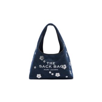 An iconic silhouette crafted in premium denim, this elevated take on the signature Sack Bag exudes the quintessential Marc Jacobs spirit. Decorated with sequin daisies, hot fix gems at the center of each daisy, and embroidered namesake branding, this carryall features a removable internal pouch for your essentials and a magnetic closure for ease. Made from denim, it includes one internal zip pocket and twill lining. With dimensions of 15in L x 8in D x 9in H, the handle drop measures 12in for comfortable carrying.