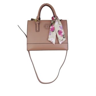 Convertible Satchel with top zipper closure, removable printed scarf, adjustable and removable crossbody strap. Dimension 11.25" x 8.75" x 4.25". 1 interior zip pocket, 2 interior slip pockets, 1 slip pocket