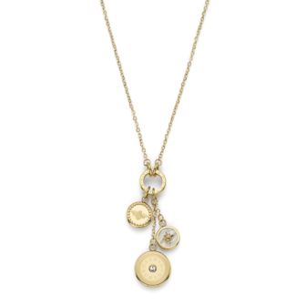 Prepare to be charmed by our vintage-inspired collection. This Gold-Plated pendant necklace features a trio of beautifully detailed charms. Each charm represents a treasured motif for our brand, including a playful bee with caviar-bead border, a North Star set on faux mother of pearl and a crystal-set disc with ribbon etching. Hung at various heights the charms can be removed