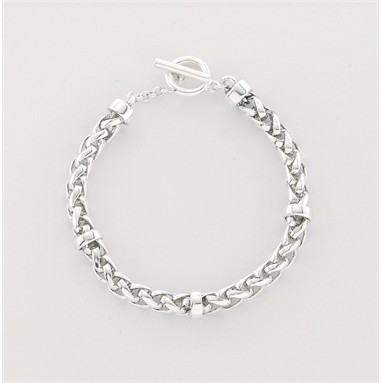 Lauren by Ralph Lauren Braided Chain Bracelet. The braided chain is punctuated by subtle stations on a sleek, rope textured bracelet with toggle closure. Measures 7.5" in length. Silver.