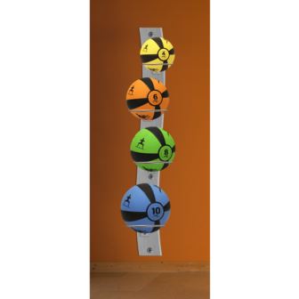 The Smart Medicine Ball Rack Package includes 1 wall-mounted rack and 4 Smart Medicine Balls. 4lb, 6lb, 8lb & 10 lb The rack is made of heavy duty steel construction. Mounting hardware is not included.