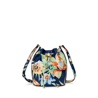 The seasons tropical floral motif enlivens this iteration of the medium Andie drawstring bag, which is crafted with crocodile-embossed leather. Designed with ample storage for your essentials, its punctuated with an “LRL" metal stopper for an iconic Lauren Ralph Lauren finish. Adjustable crossbody strap with a 21.25" maximum drop. Drawstring cinches at the front with a polished "LRL" metal stopper. Magnetic snapped closure. Interior slip pocket. 8.5" H x 7.25" L x 5.25" D. Weighs approximately 15 oz. Lining is made with polyester and recycled polyester. Shell: leather. Lining: polyester. Clean by a leather specialist. Imported. Includes a dust bag.