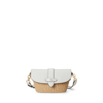 A luxurious warm-weather accessory, the small Lynden showcases a curved east-west silhouette with a woven straw base and supple full-grain leather flap-distinguished by its naturally smooth finish. A tonal “LRL" logo at the front adds signature style, while a removable, adjustable strap allows you to wear this piece as a shoulder bag or clutch. Removable, adjustable leather shoulder strap with a 14" maximum drop. Strap adjusts by the collar studs. Magnetic snapped closure. Tonal coated “LRL" metal logo at the flap. Interior hanging leather slip pocket. Dimensions: 5" H x 10" L x 3" D. Weighs approximately 12.75 oz. Shell: paper straw. Trim: leather. Spot clean with a soft, dry cloth.