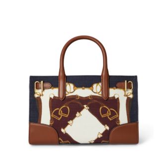 Lauren Ralph Lauren reimagines our iconic Devyn tote bag in a compact, east-west silhouette with a removable, adjustable crossbody strap for hands-free styling. Crafted with a combination of durable canvas and supple full-grain leather trim-distinguished by its naturally smooth finish-this version features an equestrian-inspired print that is quintessentially Ralph Lauren. Two top handles, each with a 3.5" drop length. Removable, adjustable crossbody strap with a 23" maximum drop. Open silhouette. “Lauren Ralph Lauren est. 1967"–engraved brass-finished plaque at the interior. Signature leather logo patch at the right side gusset. Zip pocket and a slip pocket at the interior. 6.25" H x 9.5" L x 3.75" D. Weighs approximately 14 oz. Shell and lining: cotton. Trim: leather. Spot clean with a soft, dry cloth. Imported. Includes a dust bag.