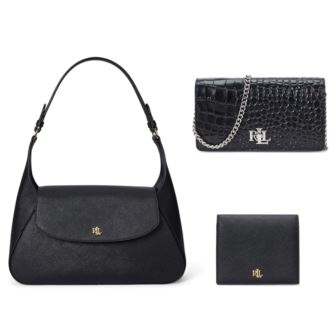 Seize the day with this Schylar Bag, Tech Case & Wallet Trio. Whether running errands in style or attending a dinner in chic fashion this bundle has a bag for you. With a sculptural, curved silhouette and sumptuous crosshatch leather, the medium Schylar shoulder bag is a refined addition to your accessories collection. It features a top handle with an 8.5" drop and a magnetic snapped closure for convenience. Inside, you'll find a zip pocket and polyester lining. Schylar Bag Dimensions: 6.5" H x 11.75" L x 3" D. Feeling edgy? The perfect grab-and-go bag for storing your phone and credit cards, the stylish tech case crossbody is crafted with glossy crocodile-embossed leather for subtle texture and refined style. Lauren's signature turn-lock closure lends an iconic touch. Chain crossbody strap with a 21" drop length. Exterior slip pocket and two credit card slots at the interior for storage. Tech Case Dimensions: 3.75" H x 7" L x 1.5" D. Finish off your ensemble with the crosshatch leather compact wallet. Bi-fold design with multiple card slots and pockets. Polished “LRL" hardware at the front adds signature style. Wallet Dimensions: 3.5" H x 4.25" L.