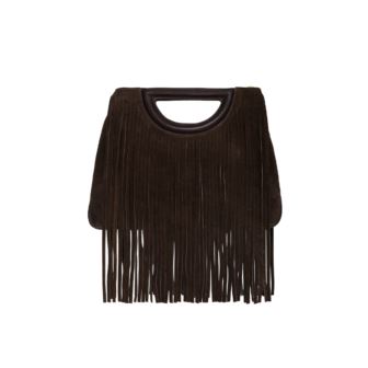 Boho with a bold twist. The Fringe Handheld Crossbody turns heads with cascading fringe, a unique cutout handle and an adjustable strap so you can sling it or grab it and go. Perfect for adding movement and attitude to any outfit. Dimensions 12" W x 8" H x 3.5" L. Includes a Cutout Top Handle and Shoulder Strap with a 46" strap drop.