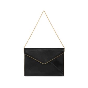 Everyones fave envelope clutch, now with a chain shoulder strap, so you can do the hands-free thing. Made of luxe pebbled leather and accented with light gold hardware, its fitted with six (!) interior card slots, so you can leave the wallet at home. 100% Leather. Light Gold Hardware Dimensions 11" W X 7.5" H X 0.25" D, 10" Strap. Magnetic Snap Closure.