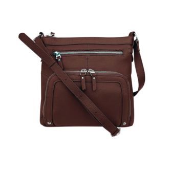 Roma Leathers - Crossbody Shoulder Bag with Organizer Front Brown