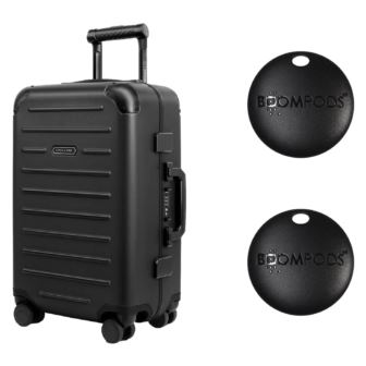 Meet the award-winning Carry-On Closet suitcase. Engineered with our patented built-in shelving system, indestructible polycarbonate shell, and integrated USB charging port, The Carry-On Closet will keep you organized anywhere your travel takes you. Kit contains 2 Boomtags - Black.