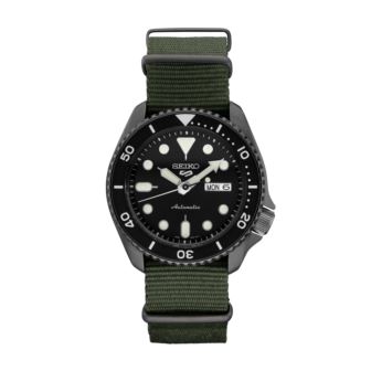 Seiko Watch - Seiko Mens Seiko 5 Sports BIF Black Dial, Field Watch, Olive Green Fabric Nato Strap, Automatic
