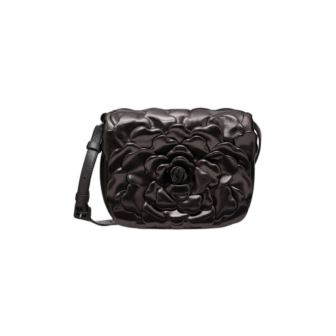 The Valentino Garavani Nappa Atelier 03 Rose Edition Small Flap Crossbody Bag in black is a refined accessory that seamlessly blends elegance with a touch of edge. Crafted in Italy from premium nappa leather, this structured bag features the iconic 3D rose embellishments that add a distinctive flair. The design includes an adjustable leather strap, offering versatile carrying options-be it on the shoulder or as a crossbody. The top zipper closure secures the leather-lined interior, which includes a zip pocket for organization. With its compact dimensions and sophisticated design, this bag is perfect for both day and evening occasions. Dimensions: 7 L x 8 W x 2.0 H, .4 lbs