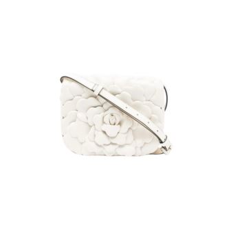 The Valentino Garavani Nappa Atelier 03 Rose Edition Small Flap Crossbody Bag in ivory is a refined accessory that seamlessly blends elegance with a touch of edge. Crafted in Italy from premium nappa leather, this structured bag features the iconic 3D rose embellishments that add a distinctive flair. The design includes an adjustable leather strap, offering versatile carrying options-be it on the shoulder or as a crossbody. The top zipper closure secures the leather-lined interior, which includes a zip pocket for organization. With its compact dimensions and sophisticated design, this bag is perfect for both day and evening occasions. Dimensions: 7.5 L x 6.5 W x 2.0 H, 1.2 lbs.