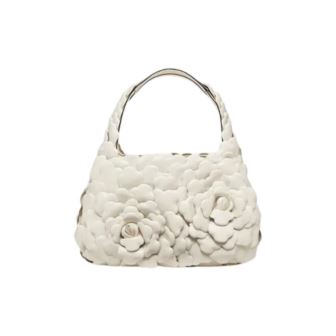 The Valentino Garavani Atelier Rose Edition 03 Small Hobo Bag in ivory is a refined accessory that seamlessly blends elegance with a touch of edge. Crafted in Italy from premium nappa leather, this structured bag features the iconic 3D rose embellishments that add a distinctive flair. The design includes a single top handle, offering a classic carry option. The magnetic closure secures the leather-lined interior, which includes a zip pocket for organization. With its compact dimensions and sophisticated design, this bag is perfect for both day and evening occasions. Dimensions: 14 L x 11 W x 1.6 H, 1.0 lbs