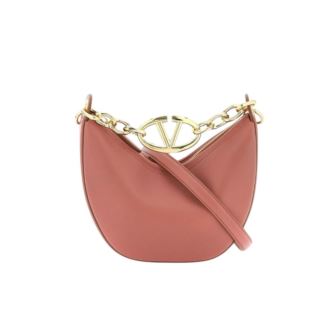 The Valentino Garavani Mini VLogo Moon Hobo Bag in rose brown is a refined accessory that seamlessly blends elegance with a touch of edge. Crafted in Italy from premium grained leather, this structured bag features the iconic VLogo Signature detail in gold-tone hardware. The design includes an integrated gold-tone chain strap with VLogo hardware and a detachable leather shoulder strap, offering multiple carrying options-be it on the shoulder, crossbody, or as a handbag. The top zipper closure secures the leather-lined interior, which includes a card slot for organization. With its compact dimensions and sophisticated design, this bag is perfect for both day and evening occasions. Dimensions: 8.5 L x 3 W x 8.5 H, 1.8 lbs