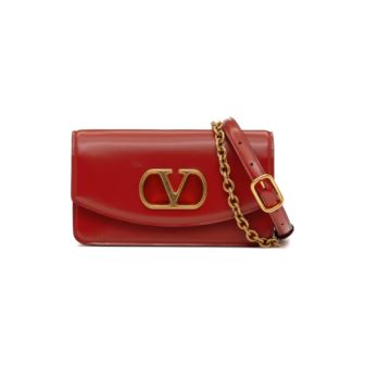 Sleek, structured, and undeniably chic, the Valentino Garavani VAIN Small Clutch in red Vitello Lucido (patent calfskin) is the ultimate evening companion. Its glossy finish radiates elegance, while the antique gold and brass VLogo Signature adds a bold touch of branding. The clutch features a flap closure with magnetic fastening, and a well-sized interior for carrying essentials like cards, lipstick, and your phone. Designed to be carried by hand or with a hidden chain strap, it seamlessly transitions from day events to formal evenings. Measuring 5" W x 2" H x 7.5" D, it weighs approximately 0.60 lbs.