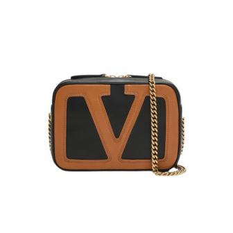 Compact, bold, and unmistakably Valentino, the Viva Superstar Chain Belt Bag in Nero with Spice VLogo is the ultimate accessory for hands-free luxury. Made in Italy from supple lambskin leather, the bag features a sleek black base adorned with an oversized VLogo patch in rich Spice brown, creating a striking contrast. Its structured rectangular silhouette is enhanced by a polished gold-tone chain strap that can be worn around the waist or as a crossbody. Ideal for on-the-go styling, the bag includes an interior flat pocket and secure zip closure. Lightweight and functional, it measures approximately 7.5" L x 5" H x 2.2" D and weighs about 0.8 lbs. A sophisticated statement piece with everyday versatility.