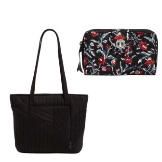 Vera Bradley - Small Vera Tote Black & RFID Turnlock Wallet Perennials Noir Package
