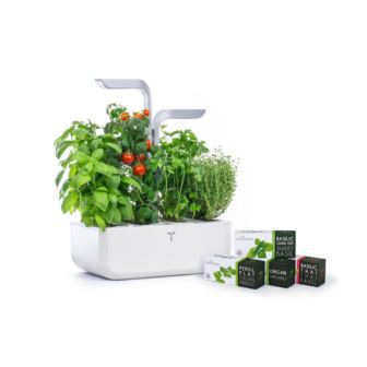 VeritableSMART is the most efficient smart indoor garden that allows you to effortlessly grow herbs, greens and vegetables in your kitchen. It is totally self-sufficient: it takes care of your plants, so you can harvest flavorful healthy food all year round. The SMART lights sensors automatically adjust the LEDs intensity based on your home natural light. Plants receive the right amount of light all day long between the sunlight and LED light. Its ultra-compact and sleek design makes it a great fit in all kitchens. Includes 4 Véritable Lingots: Sweet Basil, Curly Parsley, Chives, and Thyme. Thanks to its technology, plants grow 3 times faster than in nature to enjoy bountiful harvests!