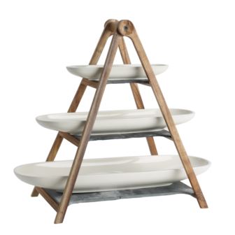 Perfect craftsmanship and sophisticated presentation, that is the Artesano Original collection. Combined aesthetics of Premium Porcelain and natural materials such as wood and slate, the Artesano Original collection celebrates simple and clearly defined design. The elegant shape complements any atmosphere, from rustic to modern, to everyday use or a special occasion. Treat yourself to versatile porcelain. The three-tiered etagere with the three oval porcelain bowls and dishes is perfect on the table during brunch with friends or on the sideboard for festive occasions. Use it to serve fruit, baguette, fine ham and cheese as well as antipasti. Make a statement with beautiful eye-catching porcelain and accessories. Dimensions: 19.06" H x 21.61" W x 10.08" L