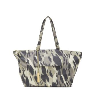 This tote is made in nylon which makes this style very lightweight. Interior reveals 1 zipper pocket and 1 slip pocket. This tote is perfect for the girl on the go and is perfect for a night away or an afternoon excursion. 20.5" W x 11.25" H x 6.2" D