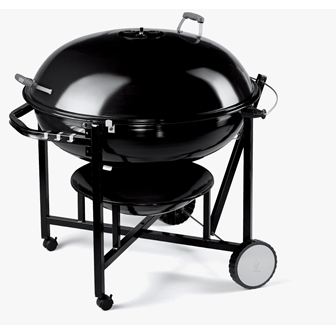 The enormous capacity of the Ranch Kettle charcoal grill sets the tone for a party that lasts until tomorrow. 1104 square inch of prime grilling space, and a stainless steel hinged cooking grate makes it easier to add more charcoal. Along with a tuck-away lid holder, rust-resistant aluminum dampers, removable ash catcher and heavy-duty steel cart is everything you love in a Weber kettle just bigger!