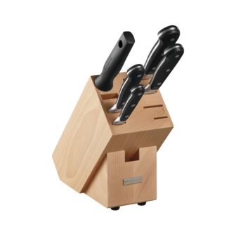 WÜSTHOF Classic offers the cutlery benchmark for tasks big and small. The traditional triple riveted design has been a favorite for generations. With perfect balance, this fully forged line performs with precision and ease. The Classic 6-Piece Set includes: Classic 3 1/2" Paring Knife Classic 8" Chef's Knife Classic 8" Carving Knife Classic 8" Bread Knife9" Honing Steel9-Slot Ash Knife Block Knife block dimensions: 12.7" L x 4.4" W x 12.3" H. Please note, due to the nature of the wood, the color and grain pattern of each knife block may vary.