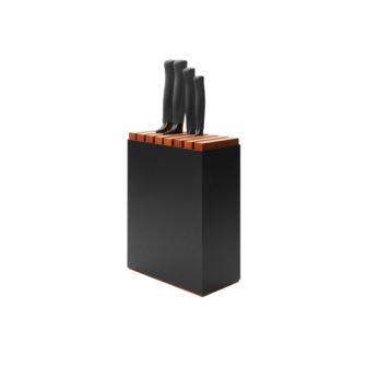 With four knives for tackling any kitchen task, the Performer 5-Piece Knife Block Set houses your unbeatable team when it comes to ingredient prep. Whether you want powerful cuts, delicate knifework, or precise plating, this quartet leaves nothing behind. The Performer 5-Piece Knife Block Set includes: Performer 8" Chef's Knife: Versatile and powerful, the all-rounder for every challenge. Performer 7" Santoku: Precise and delicate for fine slices and perfect cuts. Performer 9" Double-Serrated Bread Knife: Effortlessly slice crusty breads, soft loaves, and large produce without crushing or tearing. Performer 3.5" Paring Knife: The tiny but mighty blade for detailed prep and controlled cuts.7-Slot Aluminum Knife Block: The knife block is crafted from fine thermo beech and enveloped in deep-black aluminum. It's a dynamic design statement in your kitchen. Uniquely adaptable thanks to the beech insert, it offers space for up to seven knives and keeps your kitchen tools safely at the ready. For those who never compromise. WÜSTHOF Performer - the knife for the perfect cut.