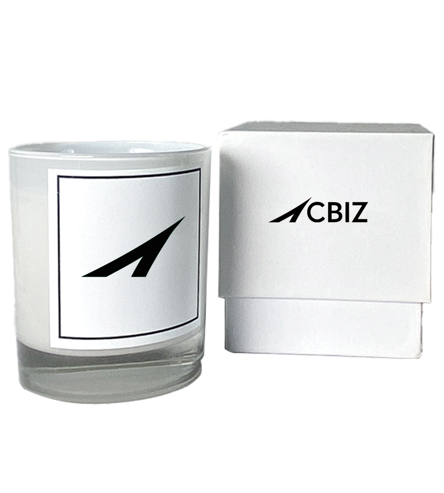 Our upscale 11oz glass candle is made of premium quality glass with a thick glass bottom, in your choice of black or white coated glass and matching two-piece box. Features our brand.