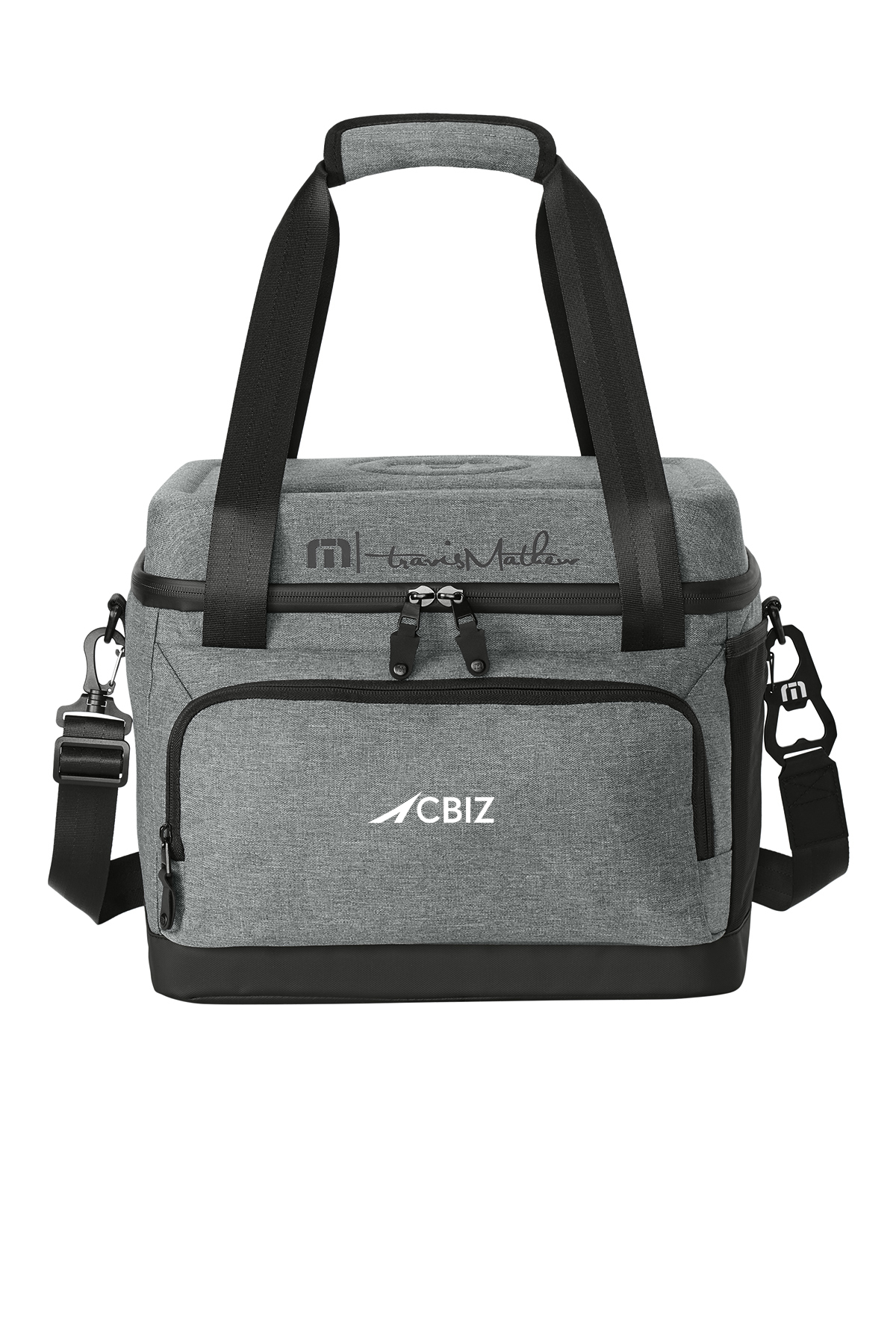 Cruise to your next pool party, camping trip or family picnic with this cooler that holds everything you need to keep chilled and raring-to-go. 600D poly Durable water repellent (DWR) finish Molded top panel with interior storage and heat transfer TravisMathew logo Fully insulated main compartment can hold up to twenty-four 12-ounce cans Front pocket for storage and decoration Detachable shoulder strap with attached TM logoed bottle opener Mesh side pockets Collapsible design with interior hooks keeps cooler compressed and secure Dimensions: 12'h x 14'w x 11.5'd Capacity: 1,556 cu. in./25.5 L Weight: 3.02 lbs./1.37 kg Note: Bags not intended for use by children 12 and under.