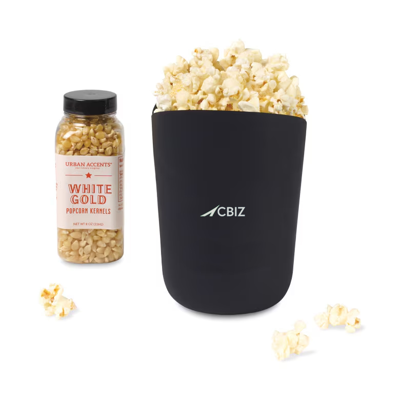 Think of all the Poppabilities this personal mini popper and Urban Accents Golden Kernels gift set has. Whether an appreciation or welcome program or a fun way to engage customers, employees or a fun giveaway.