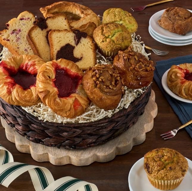 Hearty, warm, and wholesome, a country breakfast is hard to beat. This basket is full of baked goods perfect for creating delicious morning treats, just like those you would enjoy at your favorite country inn. With comfort foods like airy croissants, decadent danish, tasty tea bread, and scrumptious muffins, you can start your recipient's day with a country breakfast second to none.
