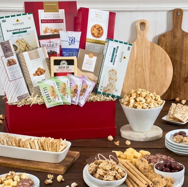 Introducing the Snack Gift Basket Premium - the ideal gift for any occasion! This basket is packed with a gourmet assortment of sweet and savory treats, making it perfect for sending to an office, families, and friends. This gift is guaranteed to delight everyone with its delicious variety, perfect for birthdays, holidays, or simply to show you care. Give a memorable gift because everyone deserves the best treats!