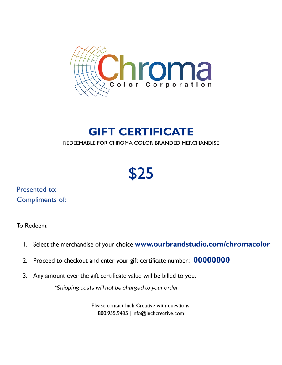 A gift certificate for merchandise, with $12.50 prepaid freight cost included at purchase.