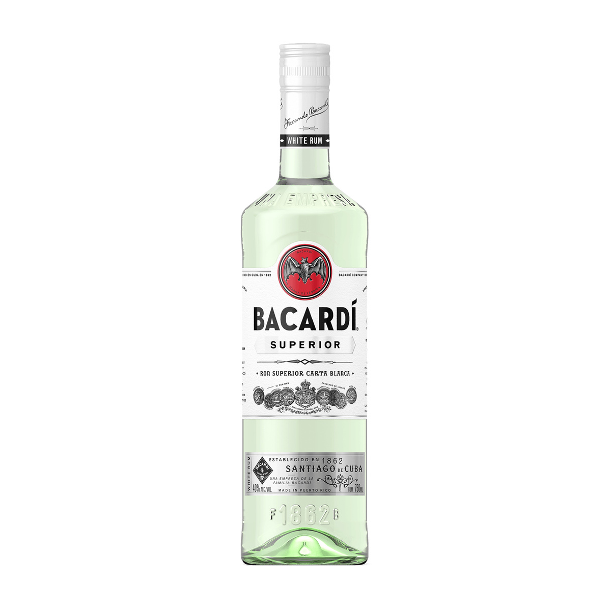 Etched Bacardi Superior White Rum 750 ml Bottle