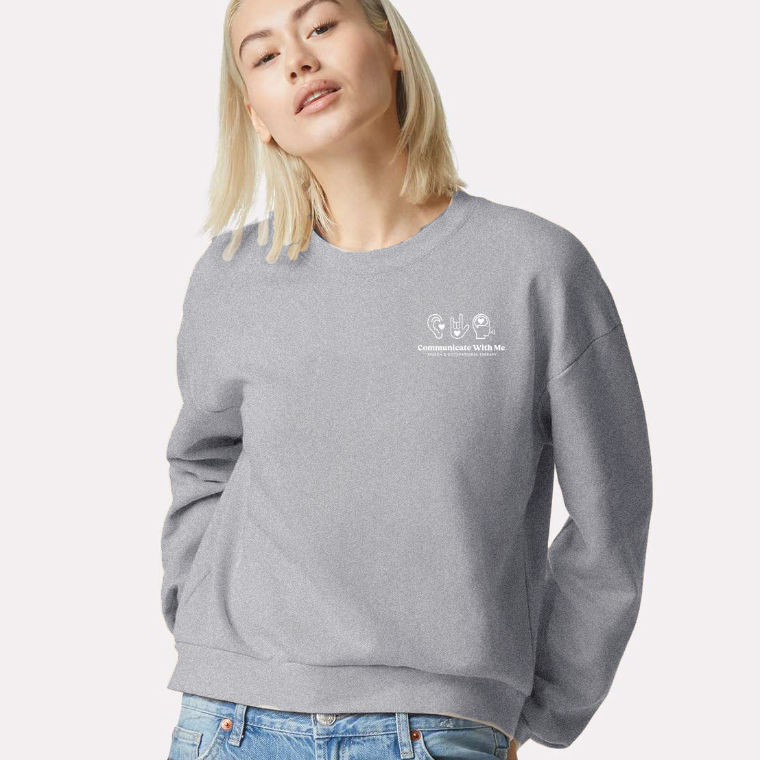 7.6 oz/SqYd, 31/1. 70% combed ring spun cotton, 20% recycled polyester, 10% polyester; 3-end lightweight fleece made using a portion of recycled polyester; 100% combed ring spun cotton face for cotton friendly decorating techniques; Made with OEKO-TEX certified low-impact dyes;1” Rolled back dropped shoulder seam for added decoration; Back neck patch for easy customization; Balloon sleeves; 1x1 rib with spandex for enhanced stretch and recovery; Boxy fit, slightly cropped, side seamed body; Recycled tear away label; Proud member of the U.S. Cotton Trust Protocol;