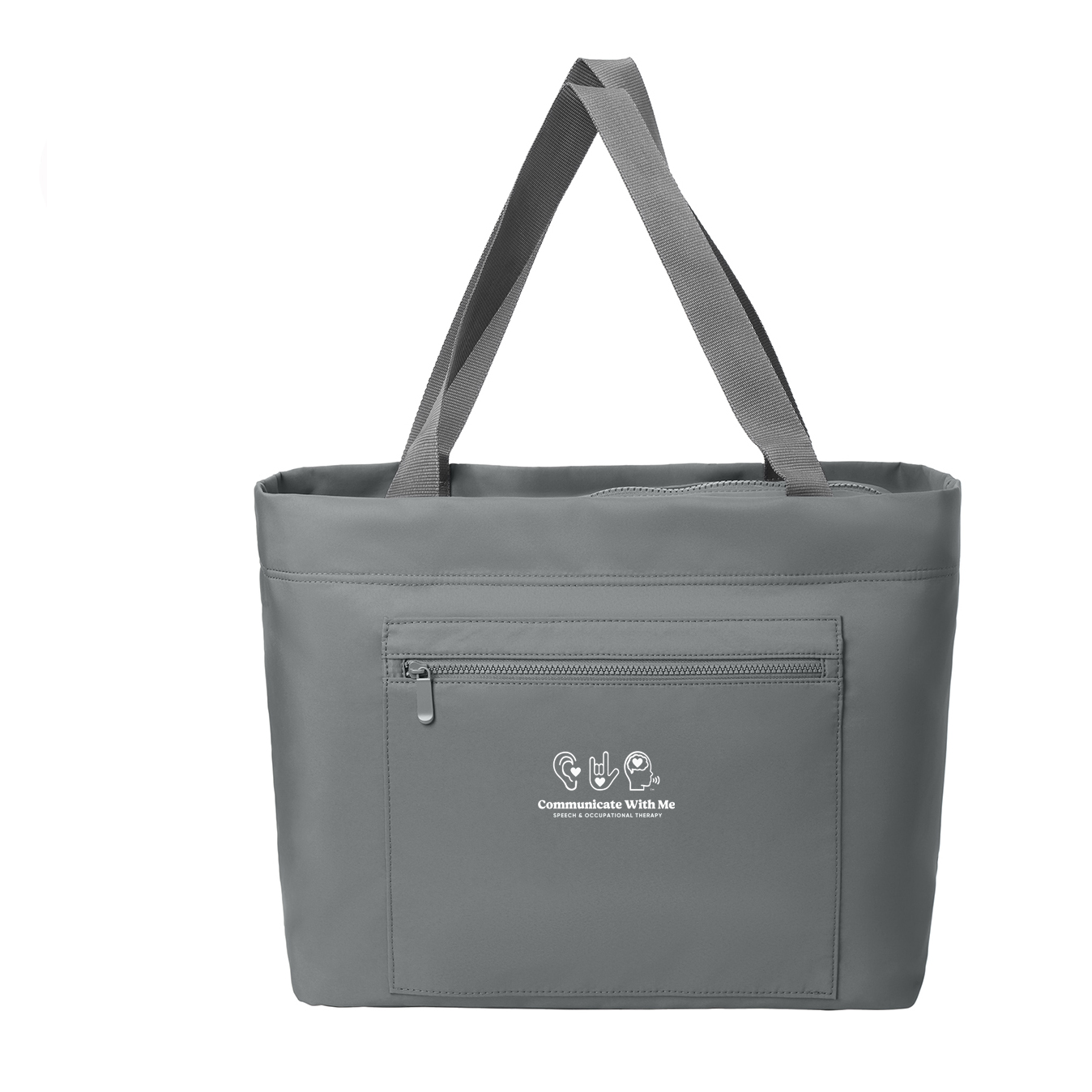 Smooth matte polyester with knitted cloth Zippered main compartment Dyed-to-match metal zipper pulls Front zippered pocket Dyed-to-match molded zippers Over-the-shoulder length webbing handles Luggage trolley pass through on back Dimensions: 13.75'h x 19'w (top) x 17'w (bottom) x 7'd Capacity: 1,831 cu. in./30 L Weight: 1.1 lbs./0.5 kg Note: Bags not intended for use by children 12 and under.