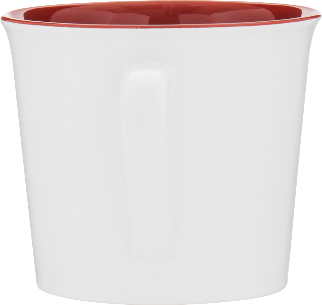 The Cavetto 11 oz ceramic mug combines classic form with a modern twist. Featuring a smooth matte white exterior and a glossy colored interior, it’s the perfect everyday mug for coffee, tea, or any warm beverage. Simple, stylish, and designed to fit seamlessly into any kitchen or workspace.