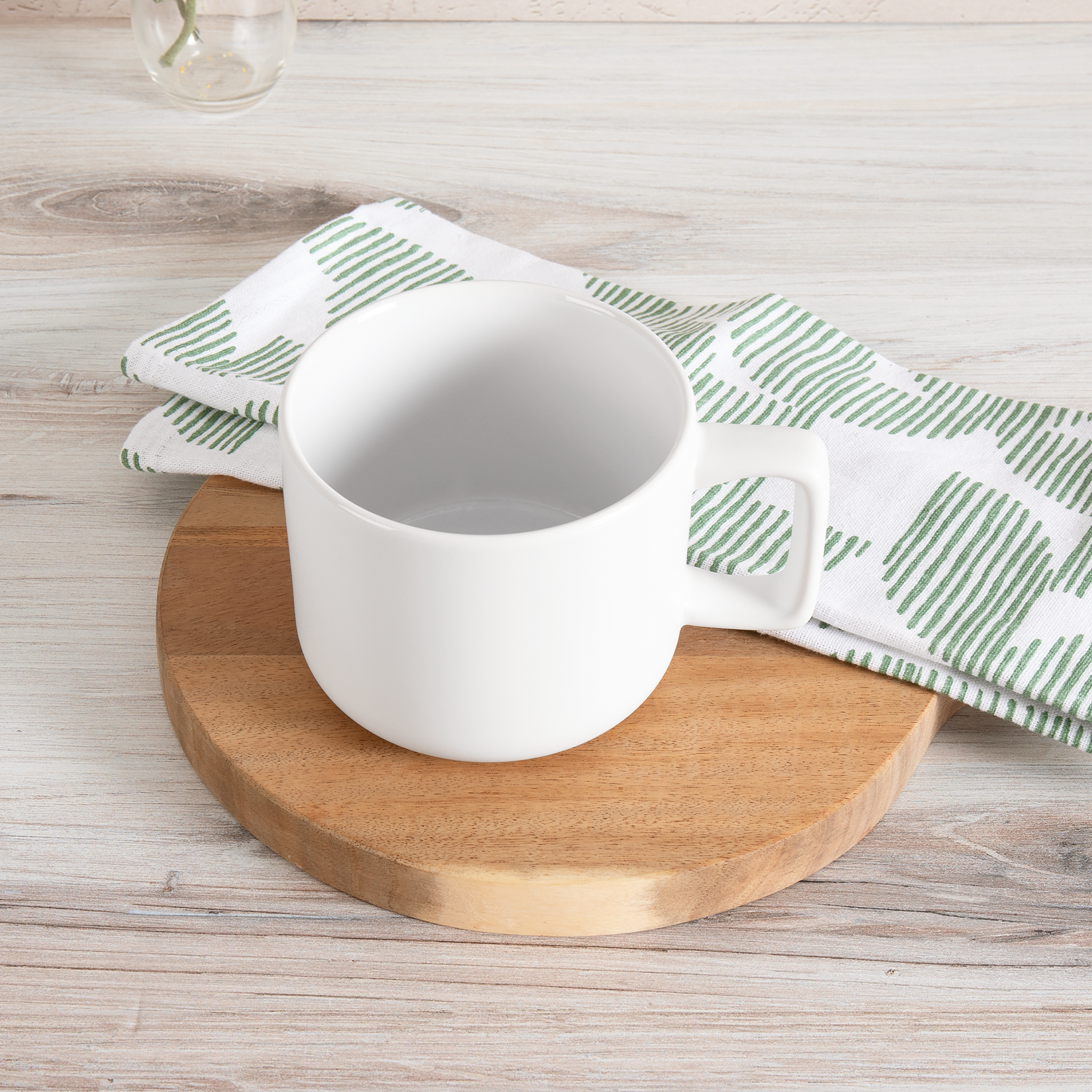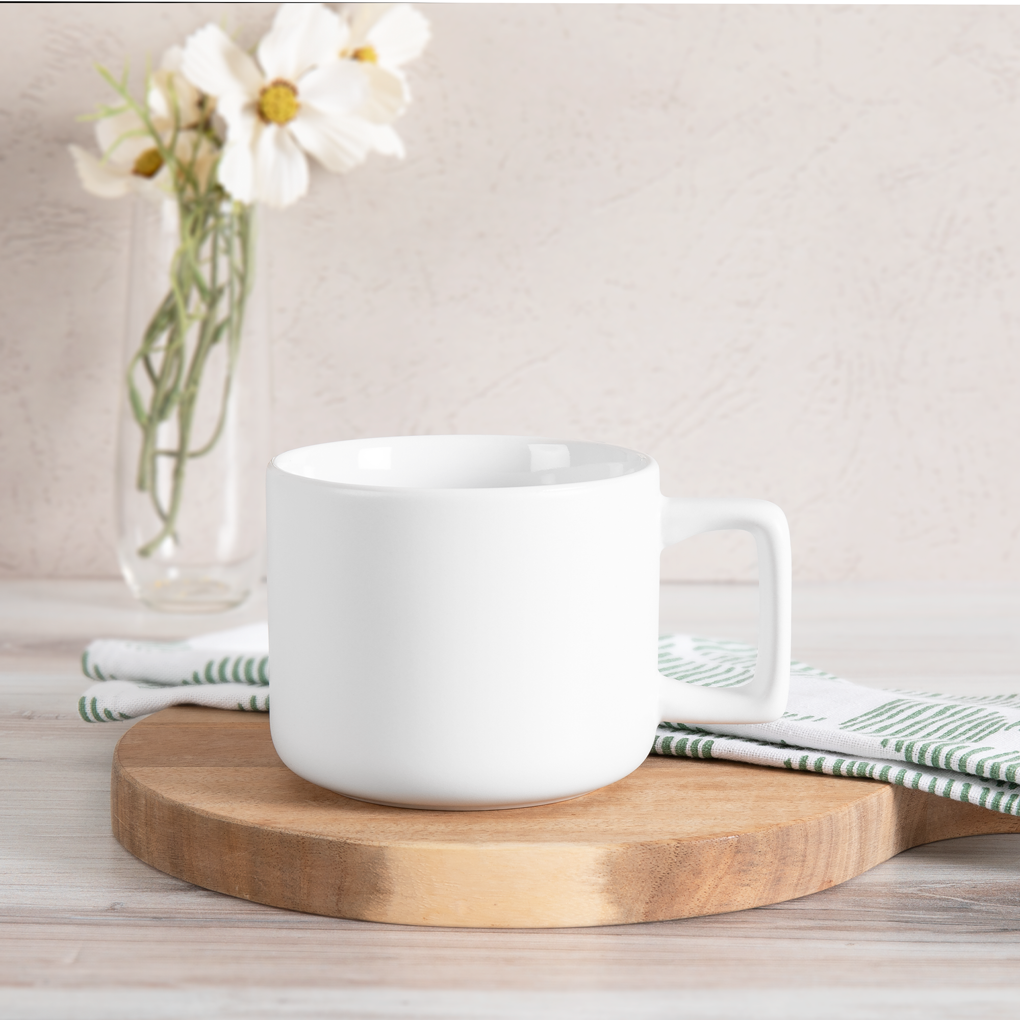 The Helio 12 oz ceramic mug blends modern color blocking with a classic coffeehouse feel. It features a matte colored exterior, a matching glossy interior, and a crisp white rim for a subtle contrast. Perfect for coffee, tea, or cocoa, Helio adds a fresh, stylish touch to any kitchen, office, or café setting.