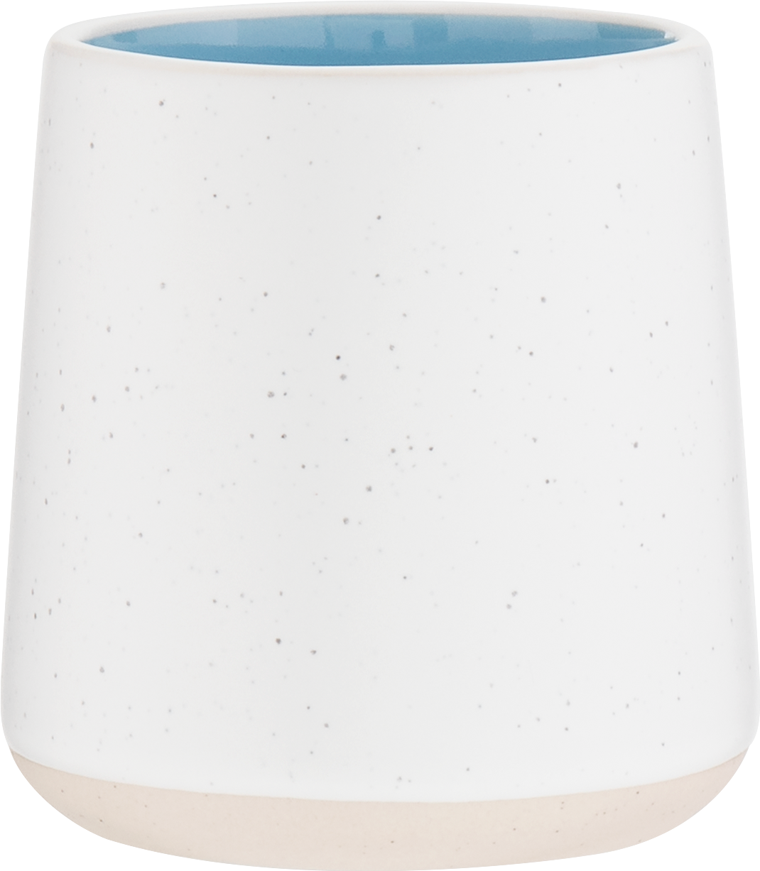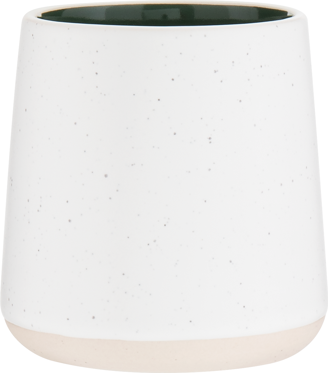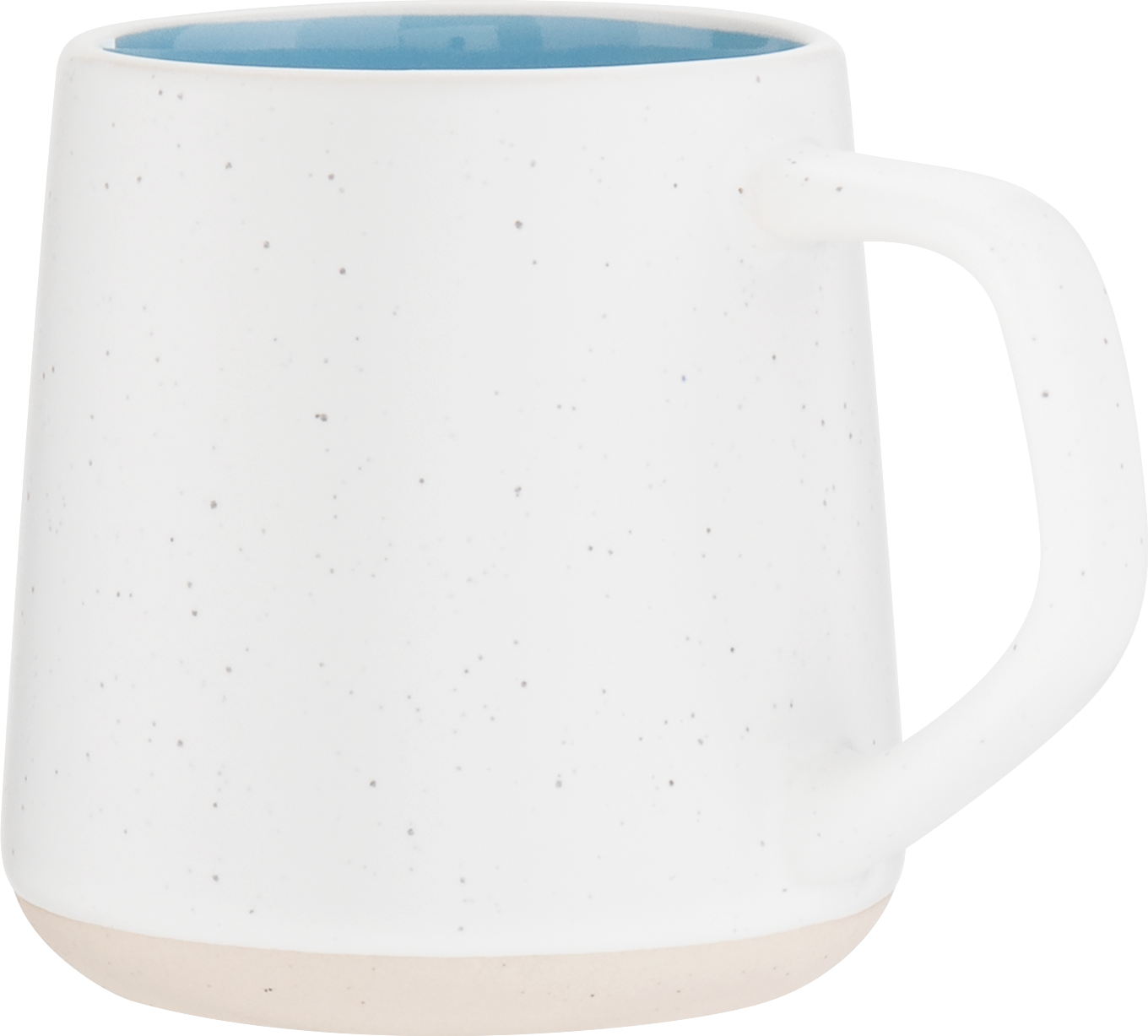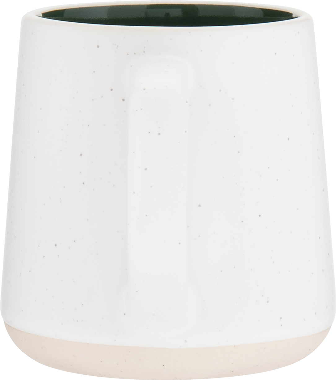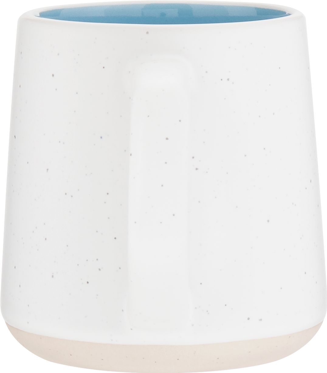The Woden 12 oz ceramic mug brings a rustic-boho vibe to your daily ritual. Its matte white speckled exterior and unglazed speckled base offer handcrafted charm, while the glossy colored interior adds a subtle pop of contrast. A cozy choice for creative spaces, relaxed mornings, or afternoon breaks. Hand wash recommended. Do not microwave with metallic imprint.