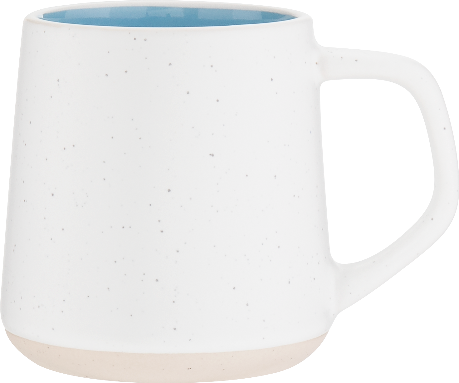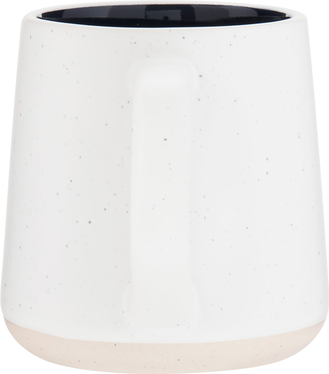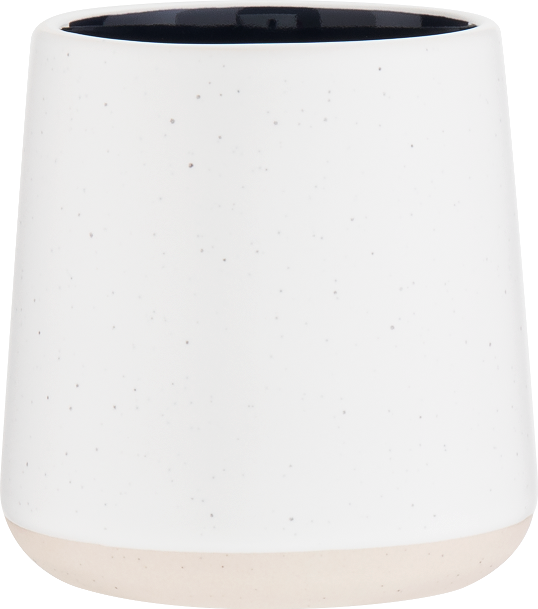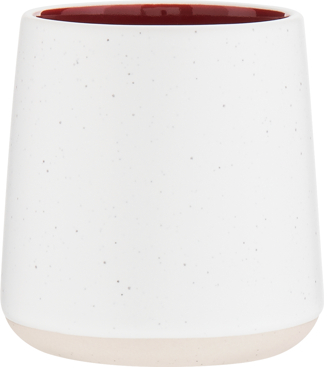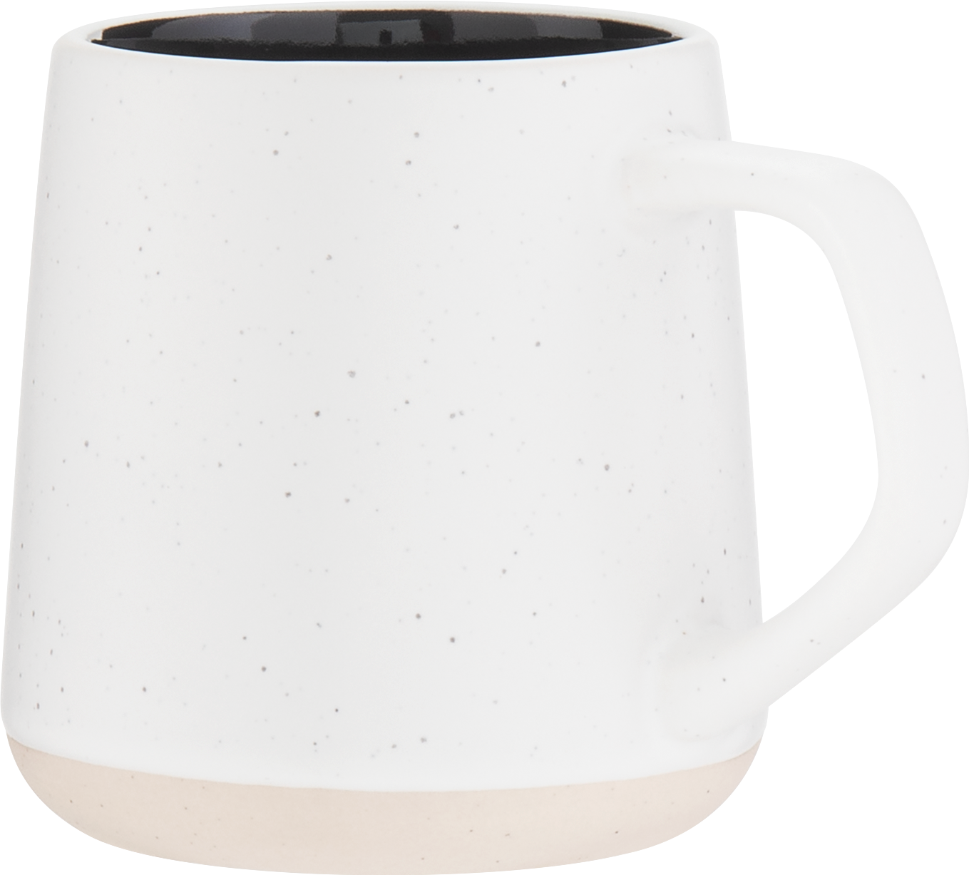 The Woden 12 oz ceramic mug brings a rustic-boho vibe to your daily ritual. Its matte white speckled exterior and unglazed speckled base offer handcrafted charm, while the glossy colored interior adds a subtle pop of contrast. A cozy choice for creative spaces, relaxed mornings, or afternoon breaks. Hand wash recommended. Do not microwave with metallic imprint.