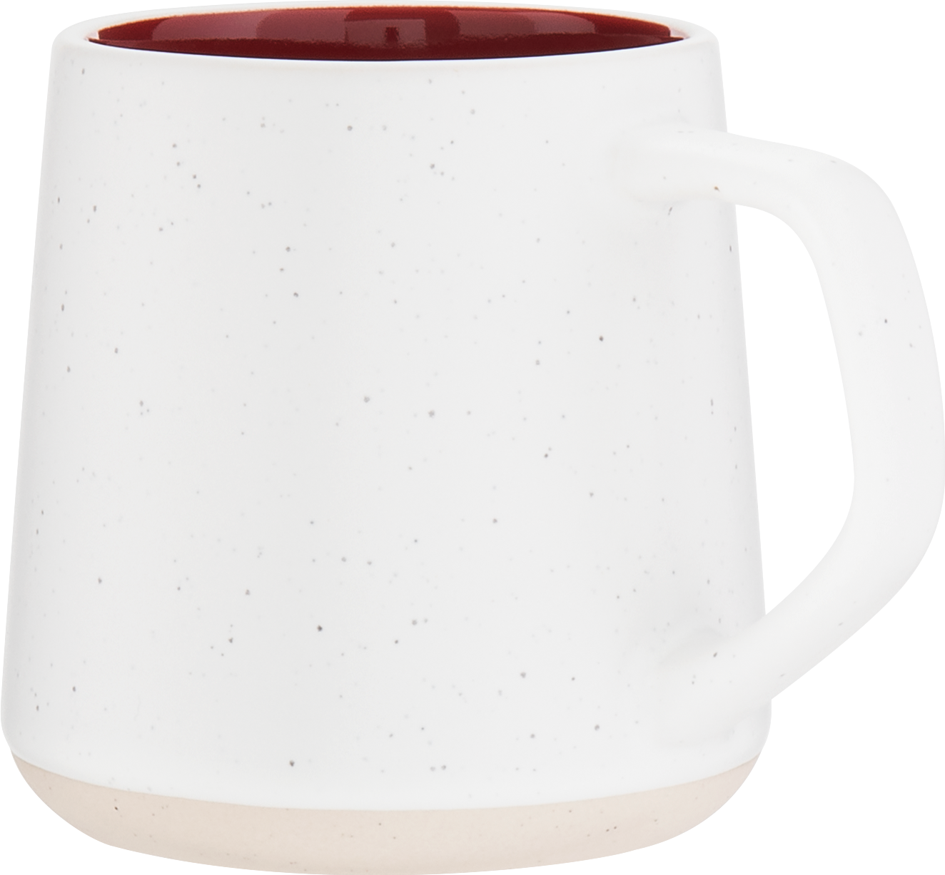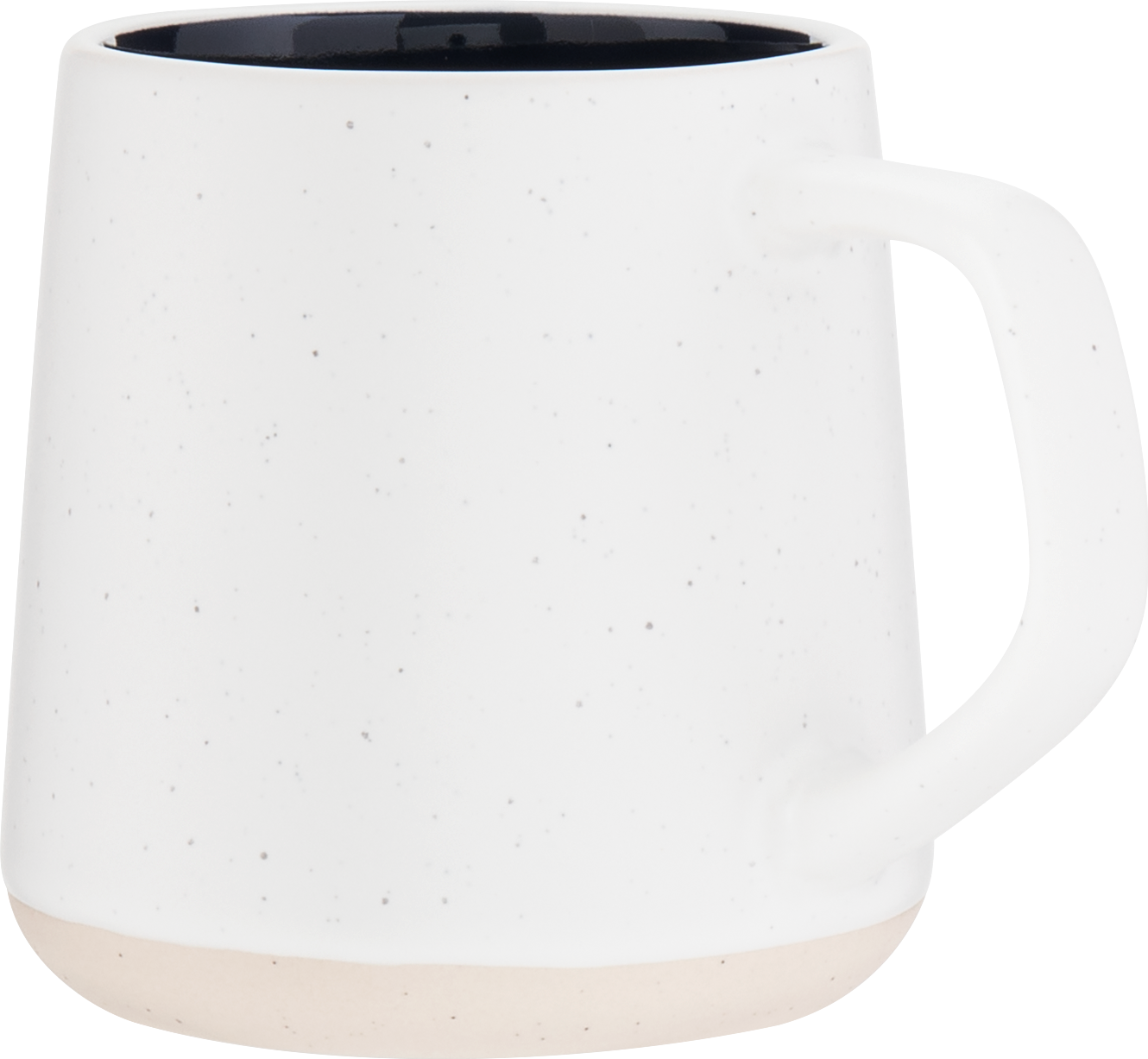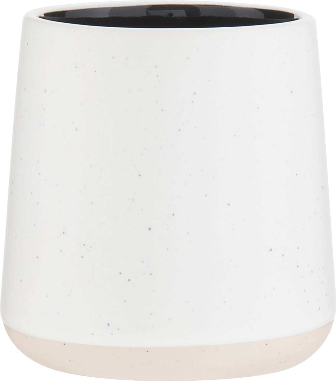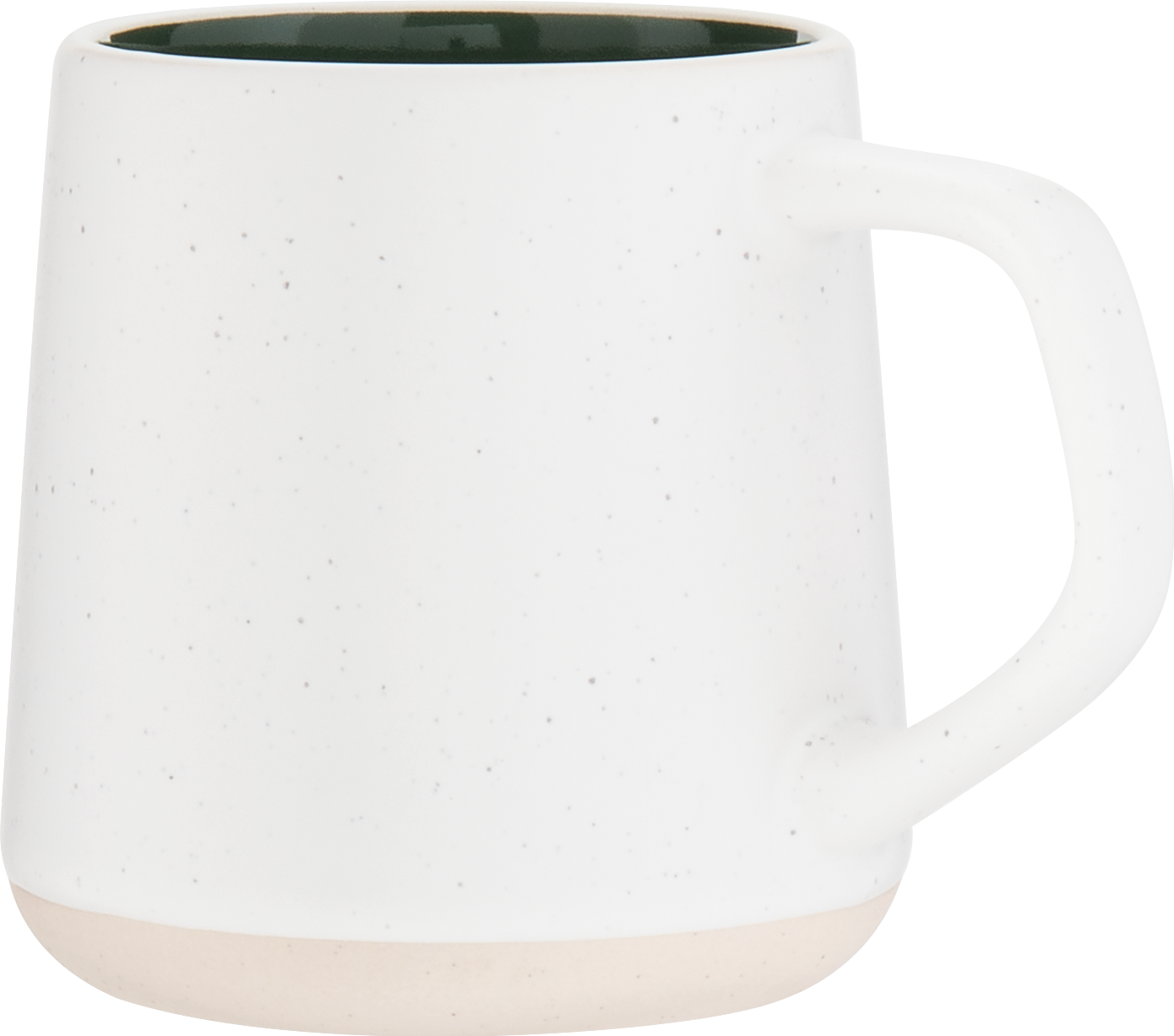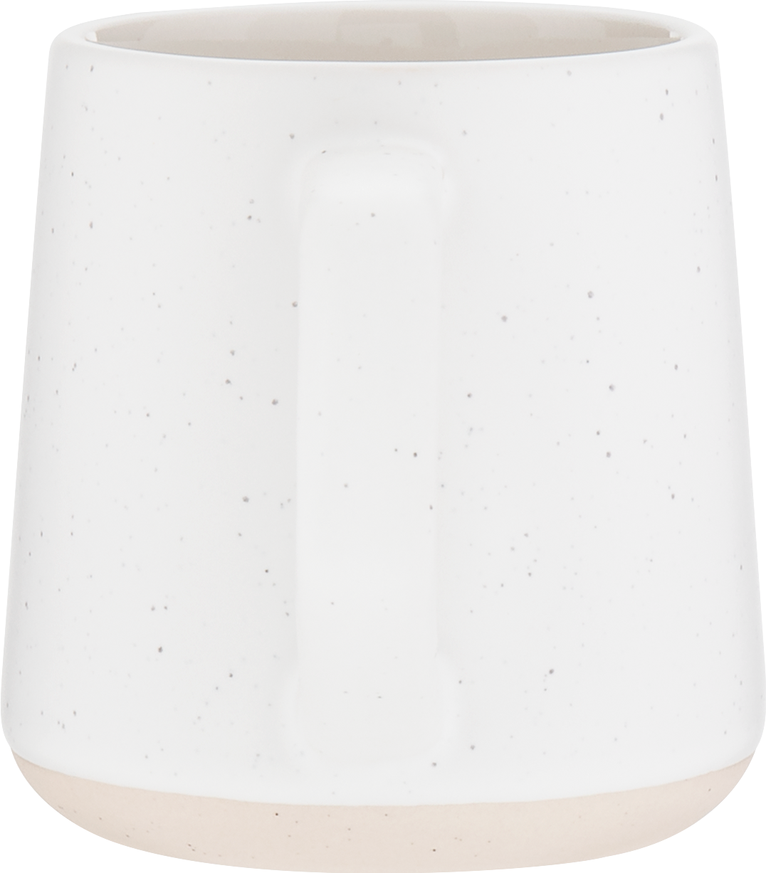 The Woden 12 oz ceramic mug brings a rustic-boho vibe to your daily ritual. Its matte white speckled exterior and unglazed speckled base offer handcrafted charm, while the glossy colored interior adds a subtle pop of contrast. A cozy choice for creative spaces, relaxed mornings, or afternoon breaks. Hand wash recommended. Do not microwave with metallic imprint.