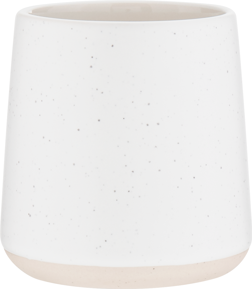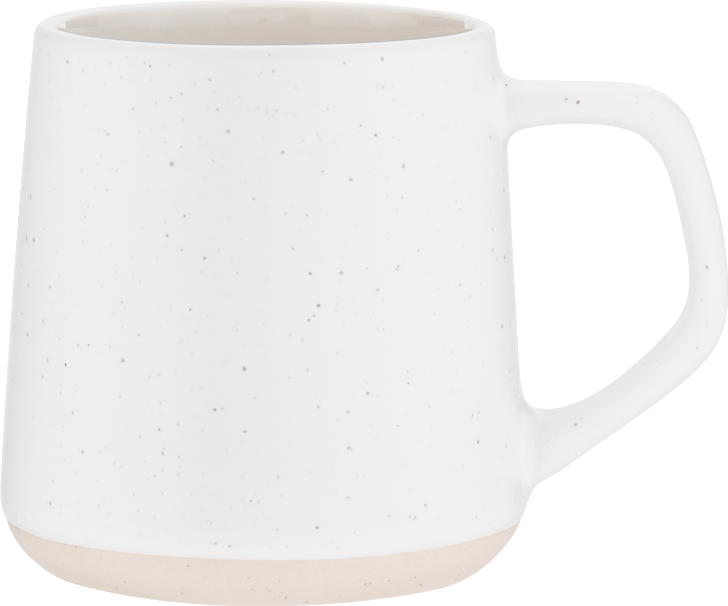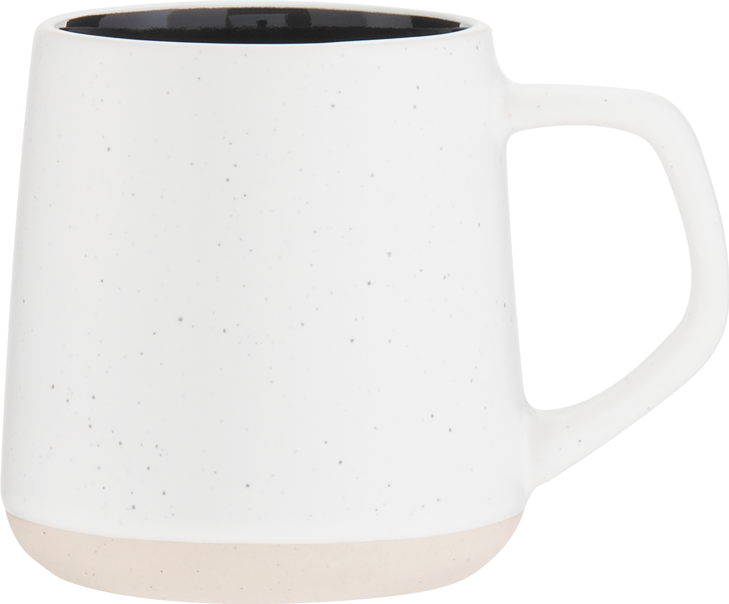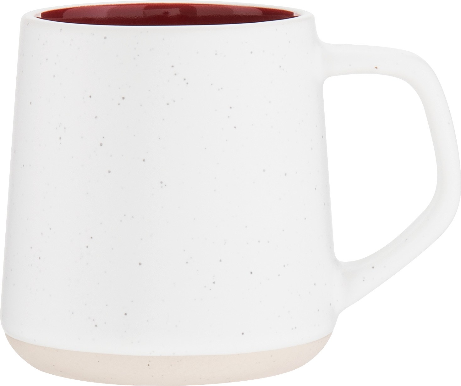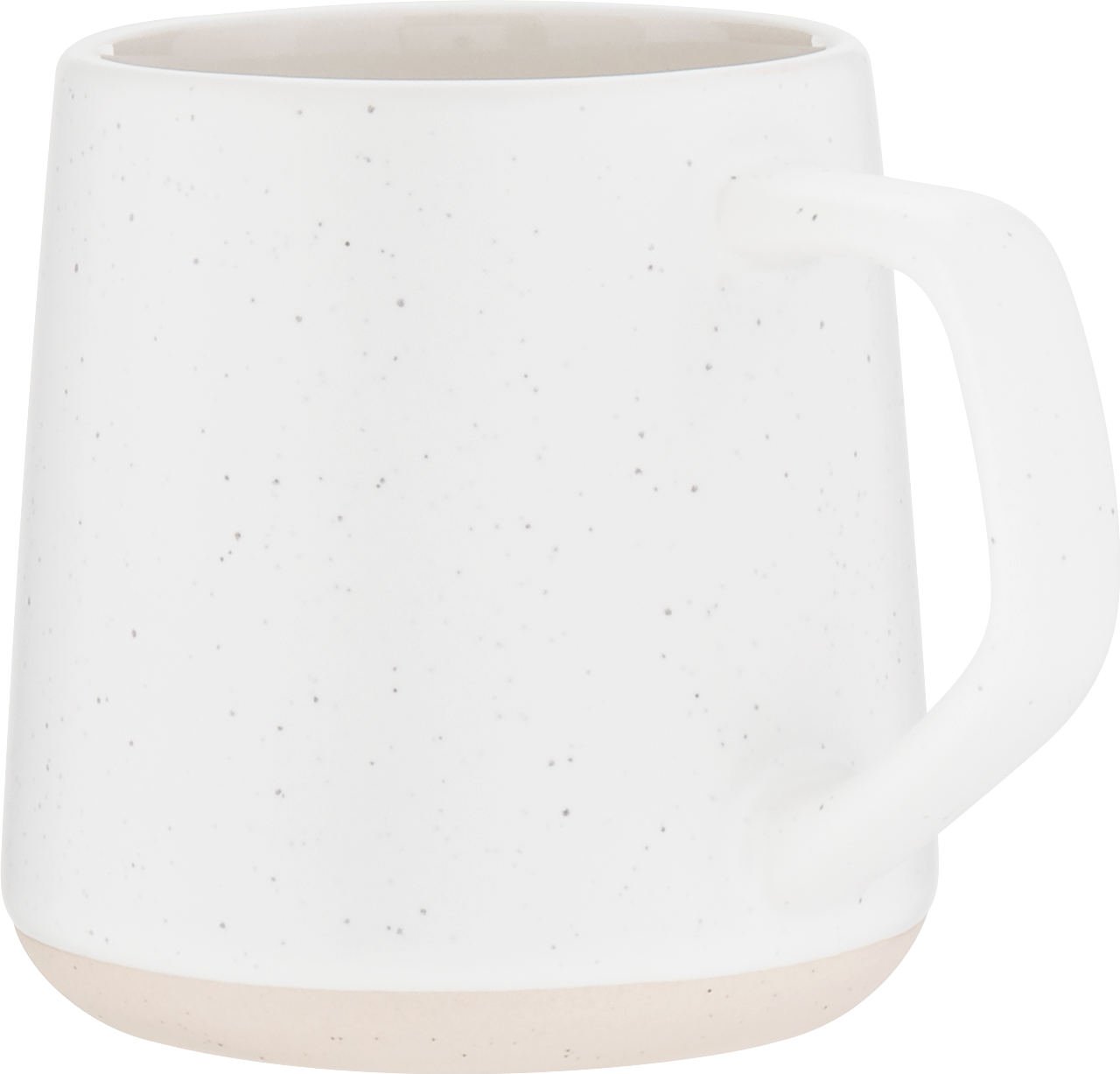 The Woden 12 oz ceramic mug brings a rustic-boho vibe to your daily ritual. Its matte white speckled exterior and unglazed speckled base offer handcrafted charm, while the glossy colored interior adds a subtle pop of contrast. A cozy choice for creative spaces, relaxed mornings, or afternoon breaks. Hand wash recommended. Do not microwave with metallic imprint.